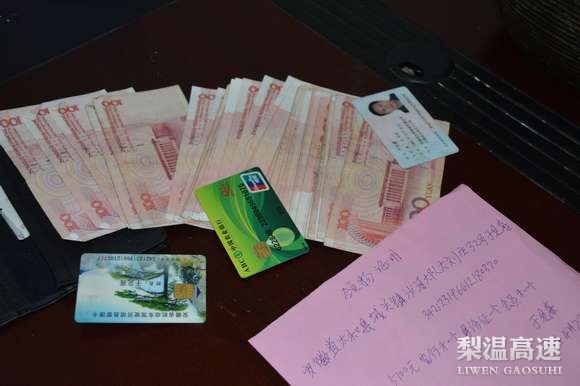 4月28日11点25分,在梨温高速赣浙收费站17道岗亭上班的收费员发现车道地面有一个钱包,里面装有5100元现金、身份证及银行卡等物品,并立即报告收费班长后将钱包上交到赣浙收费处。