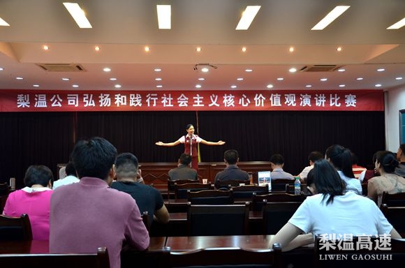 为喜迎党的生日,营造文明向上的文化氛围。6月30日上午,梨温公司举办“弘扬和践行社会主义核心价值观”演讲比赛,来自公司6个代表队共12名选手参加了此次比赛。公司副总经理邱国土、邓琼华出席并观看了比赛,并为选手们的演讲进行了点评和颁奖。