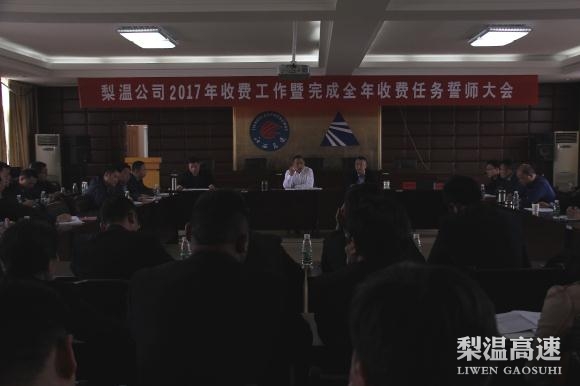 据悉,去年梨温公司积极克服全国治超治限力度加大,国省道路况升级完毕,多数货车分流等严峻形势,通过完善服务、引车上路、科技打逃等举措,费收成绩创历史新高,今年,面对行业发展形势带来的冲击,结合年度考核的紧迫性和收费工作对公司发展的重要性。主要负责人强调,全公司要有同甘共苦、共度时艰的思想认识,各级干部紧紧围绕收费主业,营造实干氛围、强化实干能力,做好带队伍、抓工作、解难题三篇文章,特别针对解难题,要以创新思路求发展,以不断深化高速公路“畅通路况、安全快速、温馨体验、求援及时”为服务体系,加强地方联勤联动,统筹驾驭发展全局,持续推动公司又好又快发展。