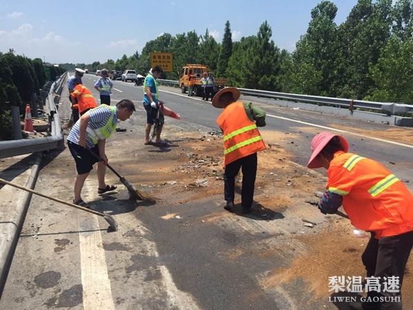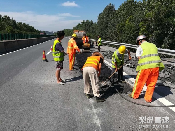 高温天气是路面病害修补的最好时机,既能保证坑槽修补的质量,又能延长道路使用寿命,为了抢抓公路养护的最佳时机,养护人员操作着风镐、压路机,一刻不停地忙碌着。高速公路上没有任何能够遮阳的地方,他们每天都在毒辣的阳光下暴晒10小时以上。高速公路路面温度基本都在50℃以上,沥青表面甚至超过80℃,整个施工区域仿佛一个大蒸笼。在烈日下,一顶太阳帽,一件标志性工作服,一把铁锹或者一把大扫把就是养护保洁人员的全部工作装备。他们挥舞着手中的铁楸与扫把,看着落叶、杂物被清理干净,看着过往司乘快捷通行,脸上露出惬意的笑容。
