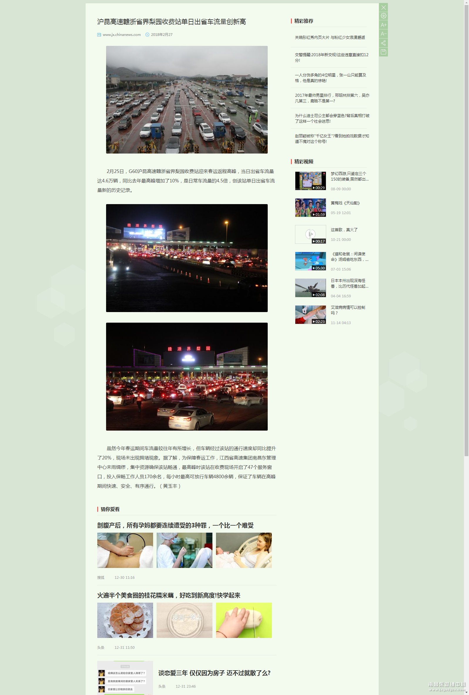 沪昆高速赣浙省界梨园收费站单日出省车流量创新高_中新网江西新闻  //www.jx.chinanews.com/news/2018/0226/16220.html
