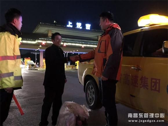 2月13日晚,南昌南管理中心杨梅岭养护站及清障救援队人员夜间巡查至K540往上海方向时,发现一名男子在高速公路上行走,当时车流量较大,高速上行车十分危险,夜间巡查人员立即下车把询问男子情况,并送该男子回上饶。