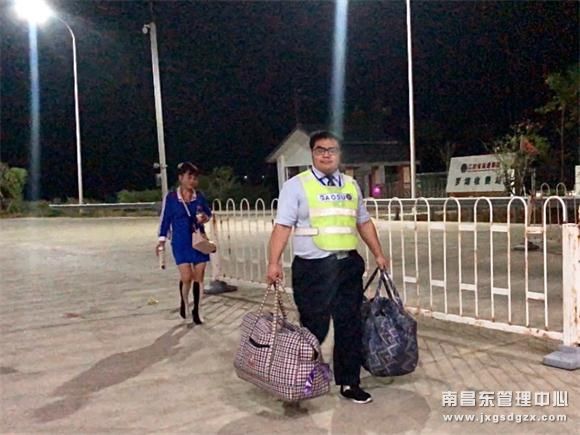 10月6日21点左右,值班人员在巡查收费广场时发现一名女士背着厚重的行李,一脸愁容的站立在连接线昏暗的角落中。通过交谈得知,此人当日从温州乘坐大巴返回宜黄,陪伴家中老人过“重阳节”,却不料误乘过境班车,司机借口赶时间被无情赶下车。