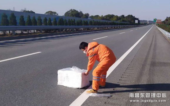 原来,2月17日下午16时许,南昌南管理中心新干养护站接到出勤电话,东昌高速往丰城方向K119+800左幅出现障碍物,严重影响道路安全通行。