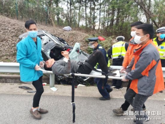 生命至上,紧急救援。正在北线路面养护巡查的杨梅岭养护站值班人员,在接到信息中心的调配后立即掉头前往事发地,由于事故路段车流较大,为了路面车流量能正常通行,以免影响正常“复工”人员行程,养护站值班人员同时通知了高速交警、路政、排障和医护人员以形成合力,快捷、高效、安全处置整个事故。