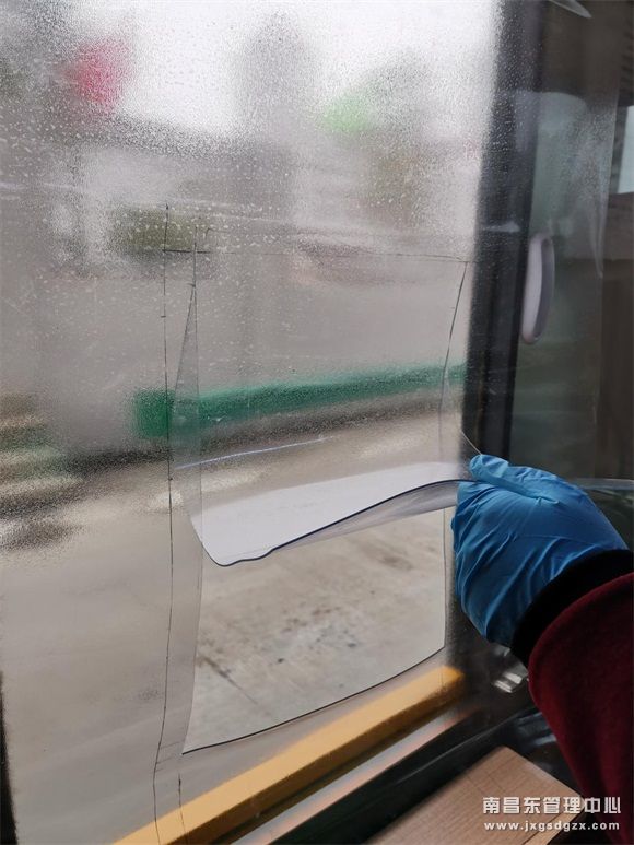 岗亭“安全帘”用PVC软玻璃膜制作,结合窗口服务要求,按照收费岗亭窗口大小裁剪、安装,同时在玻璃膜上合适的位置开了一个“U”型口,方便接送卡等服务,能有效减少收费员与司乘之间的大面积接触,也为隔离病毒筑起了一道阻断安全防线。
