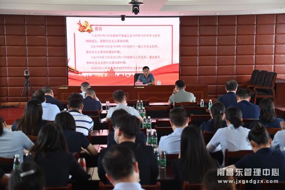 6月25日,南昌南管理中心党委组织开展学史明理党课活动。党委书记陈本华主持讲课,在家班子成员,机关全体人员在主会场,各基层干部、广大党员在分会场以视频形式听课。
