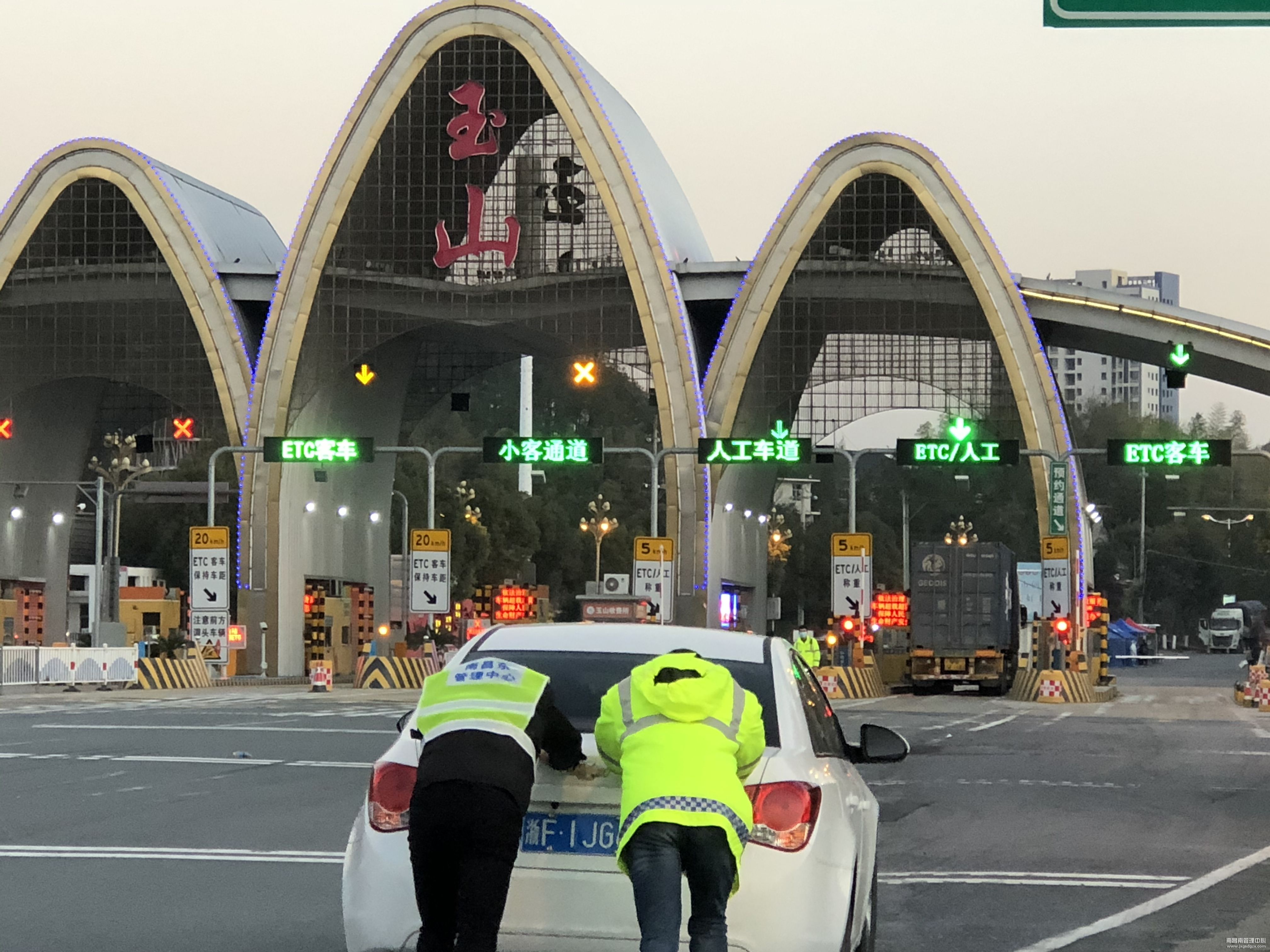 1月19日,正值春运第三天,时值晚饭时间,南昌南管理中心玉山收费站收费人员和往常一样在车道上忙碌,却见匝道口处一排排车辆如数条长龙绵延而来,当班班长上前仔细分辨了下车情,小车居多,且多是外省车牌,顿时明白是因为主线流量大车辆倒灌导致的突发分流,于是他拿起对讲通知值班站长。
