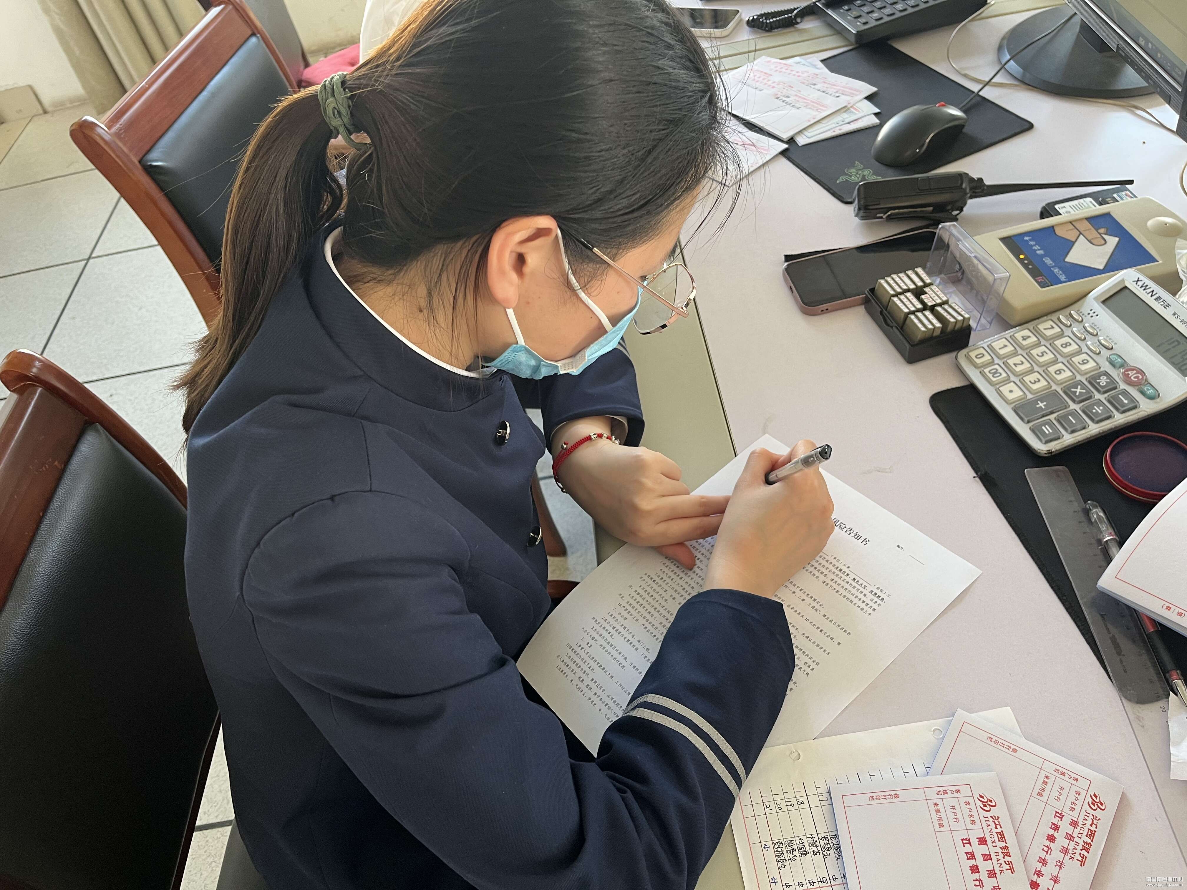 南昌南收费所:当前疫情正处在关键时期,针对近期疫情防控严峻形势,做好收费安全生产工作,让员工更好的了解收费工作安全的重要性,南昌南站组织全站员工填写中心下发的收费岗位安全风险告知书,提高全员收费安全意识,强化了日常收费安全管理。