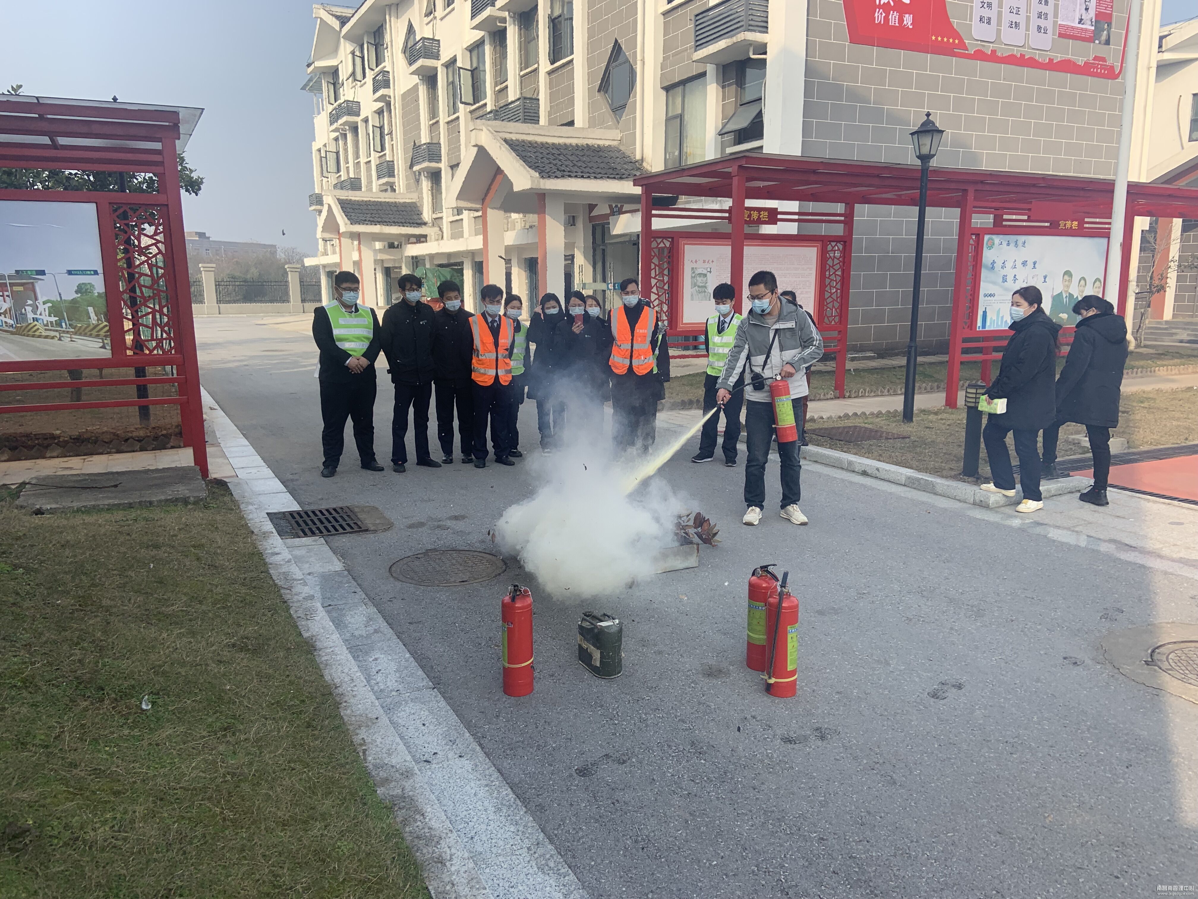 为了增强员工的应对突发事件处置能力,提高自我防护意识。近日,南昌南管理中心弋阳收费站邀请弋阳县消防大队开展春季安全消防演练。