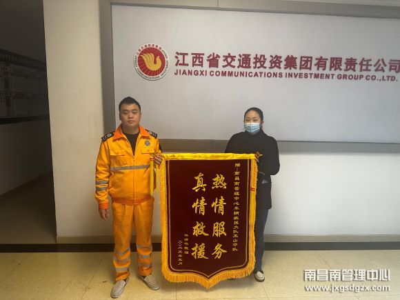 3月27日上午,来自浙江义务的许女士亲自将一面写有“热情服务,真情救援”的锦旗送到了省交投集团南昌南管理中心玉山中队救援人员手中。她激动地说道:“你们的细心和责任心替我挽救了我的健康和生命,我必须亲自上门道谢!”。
