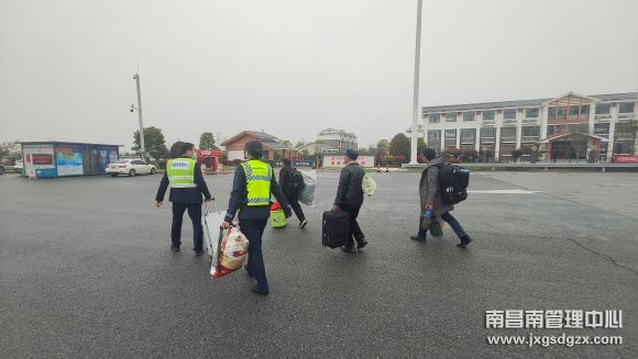 2023年4月10日下午,南昌南收费站收费员伍梦怡发现有三名中年男子拎着大包小包从收费广场向收费岗亭缓缓走来,伍梦怡一边大声向三位中年男子喊话:“危险!行人不允许上高速!”,一边拿对讲机向班长报告,正值在车道巡查的站长胡方雯和副站长刘洁云听到后,立即来到现场,经了解后得知三人是附近村民要外出打工,为图方便就带着行李准备到高速路上等外地大客车。