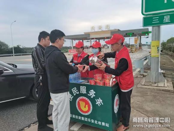 志愿者还在收费广场设置便民服务台,为过往车辆免费提供热开水、矿泉水、方便面、应急药品、修车工具等,以及免费办理ETC、ETC激活延期等售后服务。