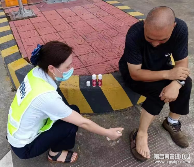 查看发现他的右脚脚背上鼓起一个很大的圆圆的胖块,而且颜色有点发青。随后拿来云南白药气雾剂喷洒在司机的伤口处,静待药物渗透到皮肤里面时,询问司机是怎么弄伤的?司机回答:“我是刚上高速之前整理盖在货物上的篷布,脚踩在轮胎,结果篷布打滑没抓稳,失去重心,脚被扭伤了。这车钢铁是要运到福建去,我一个人路上要开8个小时,扭的还是开车要用到的右脚,我不敢冒险,所以向你们收费站寻求帮助。”