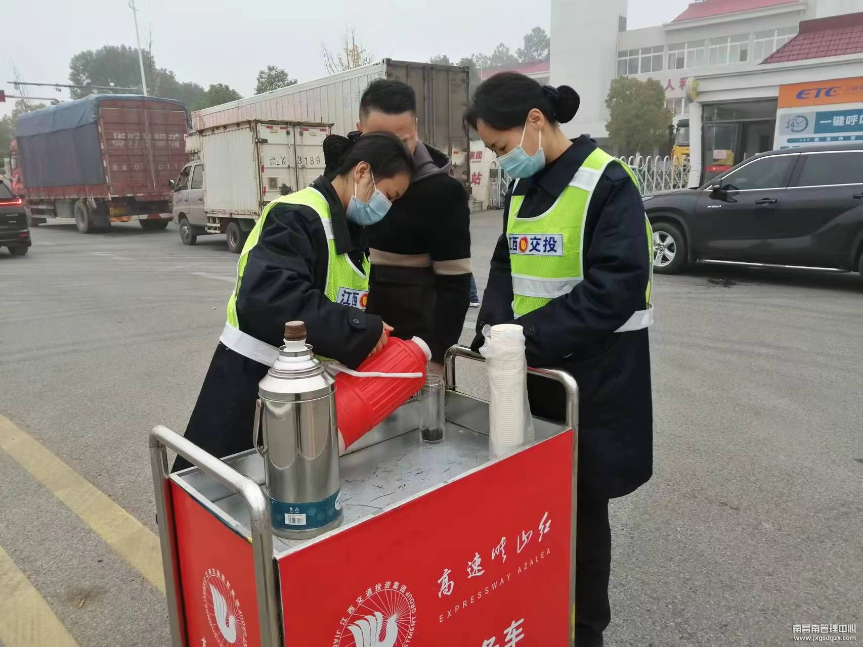 为避免等待上高速的车辆不断增多造成交通阻碍,凌晨5点,该站值班站长启动应急预案,做好通行保畅准备。一方面密切关注入口广场车辆情况,组织人员在入口广场沿双黄线摆放安全锥,劝导车辆有序排队;另一方面,积极开展便民服务,为滞留群众提供热开水、方便面等物品。(任雯)