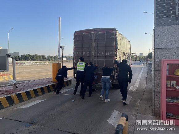 新干北收费站:车辆熄火故障 收费员徒手推车来相助