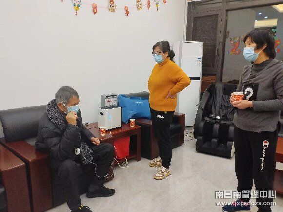 工作人员了解这一情况后,立即来协助老人家属搀扶至综合服务站里休息。由于当时老人脸色惨白,情况非常紧急,工作人员检查老人携带的呼吸机,发现是呼吸机没电了,便立马接通呼吸机电源缓解老人的症状,随后贴心的倒热开水给其饮用,不断安抚稳定老人家的情绪。