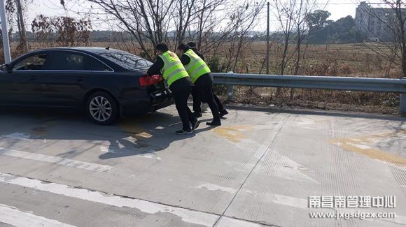 2月4日,春节小长假的最后一天,南昌南管理中心东乡西收费站值班班班长正在车道疏导期间,看到远处有人着急向收费站出口方向跑来,值班班长立即挥手示意其靠边慢行注意来车,并同时迎上去将司机先引至安全位置并询问其具体情况。
